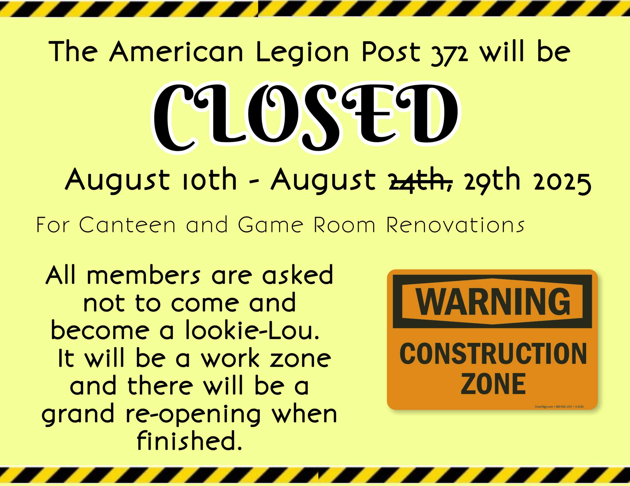 Hall Events will continue (Blood Drive, etc) while canteen is being renovated.