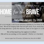 Legion members – Join us to pay a visit to our homeless veterans at the Home for the Brave. We will be bringing them food and gift cards. If you … Continue reading →